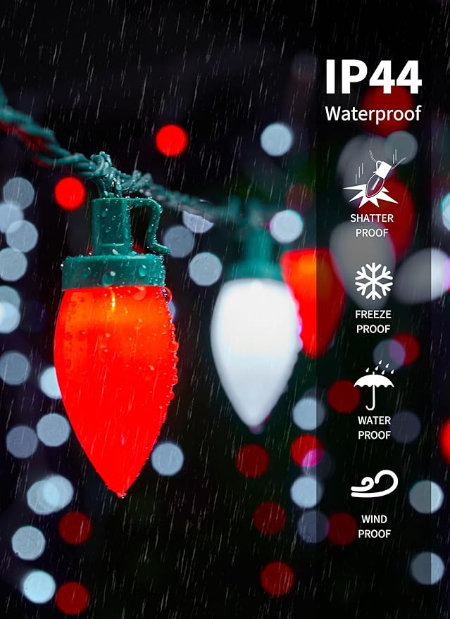 - 【 Connectable Up to 33 Sets 】- You can connect up to 33 sets of these C9 LED Christmas string lights end to end, providing convenience for decorating large areas or substantial outdoor objects such as rooflines or oversized trees
