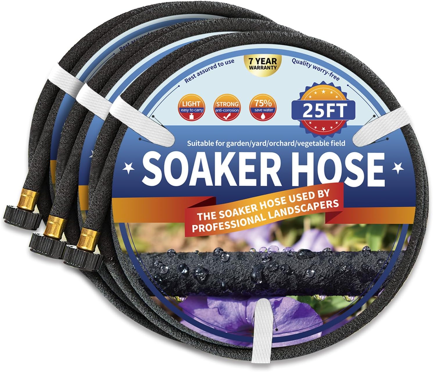 3 Pack Soaker Hose 25 FT, 1/2’’ Diameter Heavy Duty Soaker Hoses 75 FT for Garden Beds To Save 70% Water, Short Drip Soaker Hose for Vegetable Beds (3 Pack 25 FT)