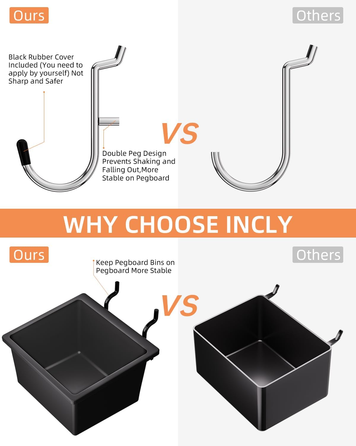 - PEG BOARD TOOL HANGERS: The peg board hooks are made of hardened steel construction, corrosion-resistant chrome plating finish to provide maximum strength, resist rust and corrosion. Ensures long lasting durability