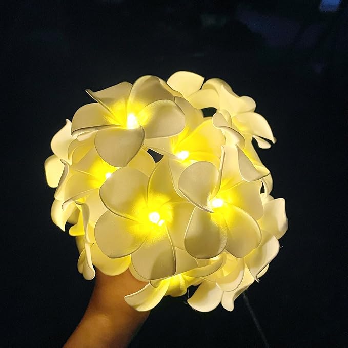 Solar Petunia Blue Morning Glory Flowers and Solar Hawaiian Frangipani Flower String Lights Tropical Flowers