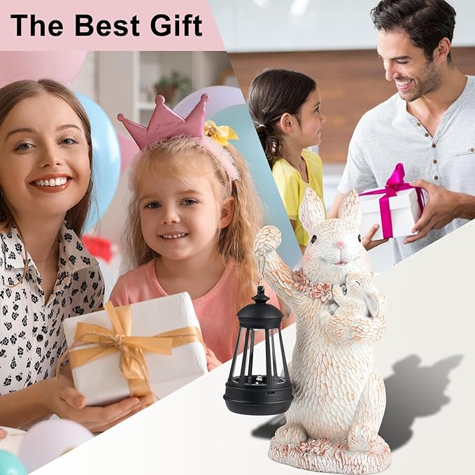 - Beautiful outdoor decoration: Our rabbit statue lamp outdoor decor, paired with LED lights and lantern, adds charming atmosphere to indoor and outdoor spaces. Its cute smile and exquisite design bring warmth and fun to your home. It glows day and night, dispelling your daily fatigue. Perfect for backyard, garden, tiki bar, flowerbed, walkway, terrace, lawn, and porch decor.