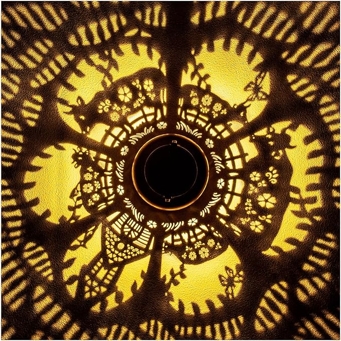 - 【Beautiful Garden Decoration】- Cow Outdoor Solar Lanterns can project unique and beautiful light patterns in dimly lit environments, creating a gorgeous and warm atmosphere, adding life and fun to your garden and attracting your family or friends. The very unique hollow design and antique bronze color give it an elegant and artistic look, perfect for decorating backyards, gardens, corners, outside, pathway, tabletop, courtyards, sidewalks and many other scenes.