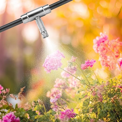 - 【Wide Application】: These adjustable spray misting nozzles with Drip Irrigation Connector can be connected to most 3/8 inch Nylon PE PU tubing and widely used for agricultural production, lawns, home gardening, terraces, patio, roof cooling, balcony cooling, plant watering, greenhouse vegetable and humidification ,irrigation etc..Help cooling the air and widely suitable for Cooling Misting System for Outdoor Plant Garden Patio Greenhouse.