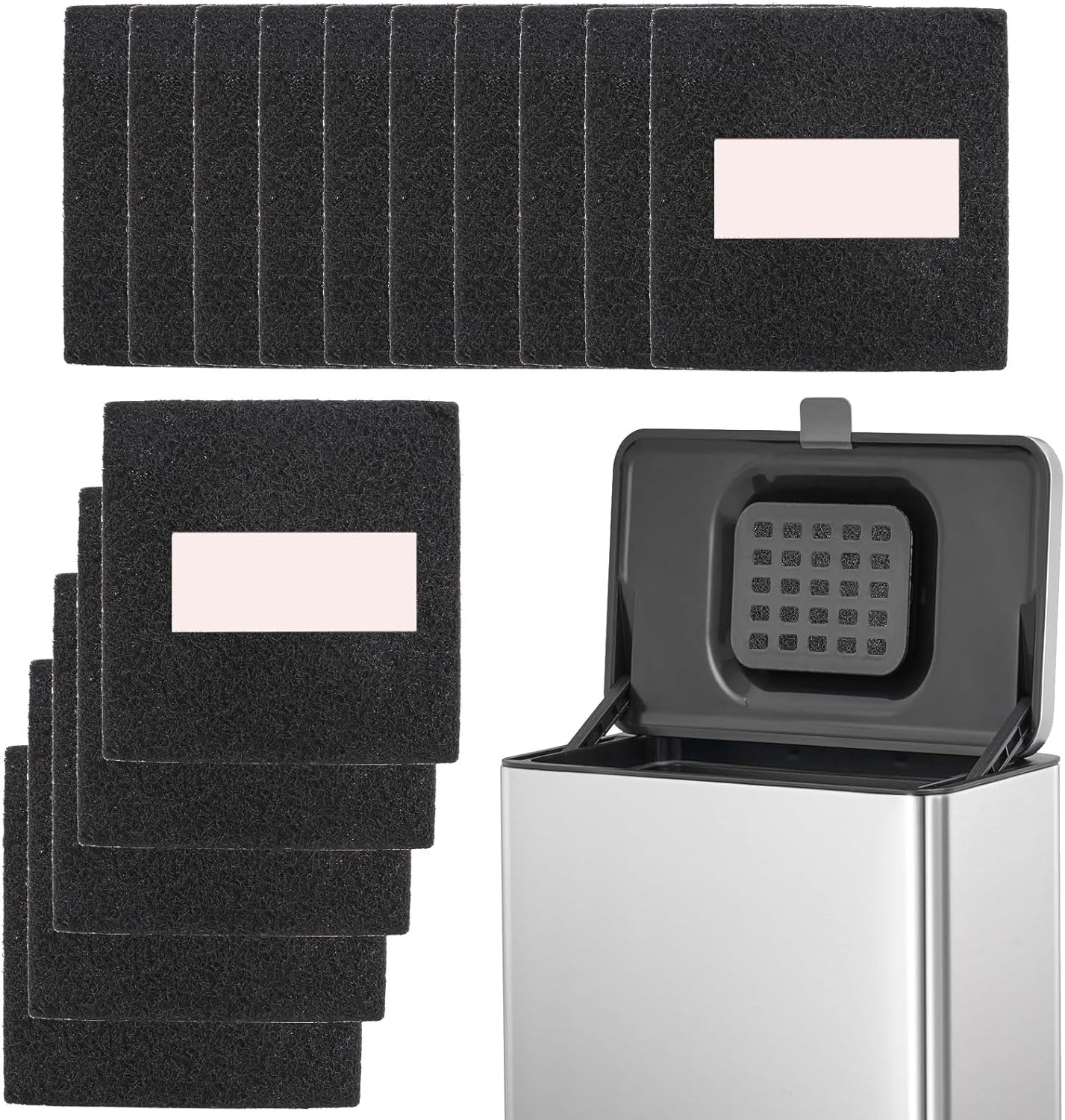 15 Pack Trash Can Odor Filter Refills for Trash Can and Compost Bin, Activated Charcoal Deodorizer Sheets for Indoor Kitchen Compost Bucket Countertop and Recycle Bin, Square 3.9 Inch