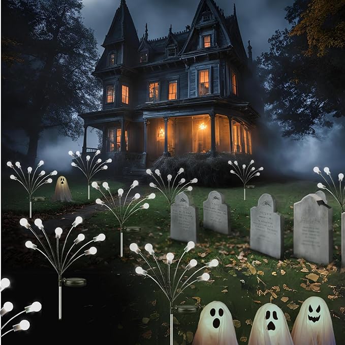 - ESAY INSTALLATION:Firefly lights solar outdoor no plugs, cords, or expensive installation is required. Just flip the switch, attach the lights to the metal sticks provided, and then stick them into the ground. Outdoor solar lights are also great for Christmas decorations, Halloween decorations, New Year's, parties and other outdoor decorations, and can also be an ideal gift for anniversaries and birthdays among family and friends.