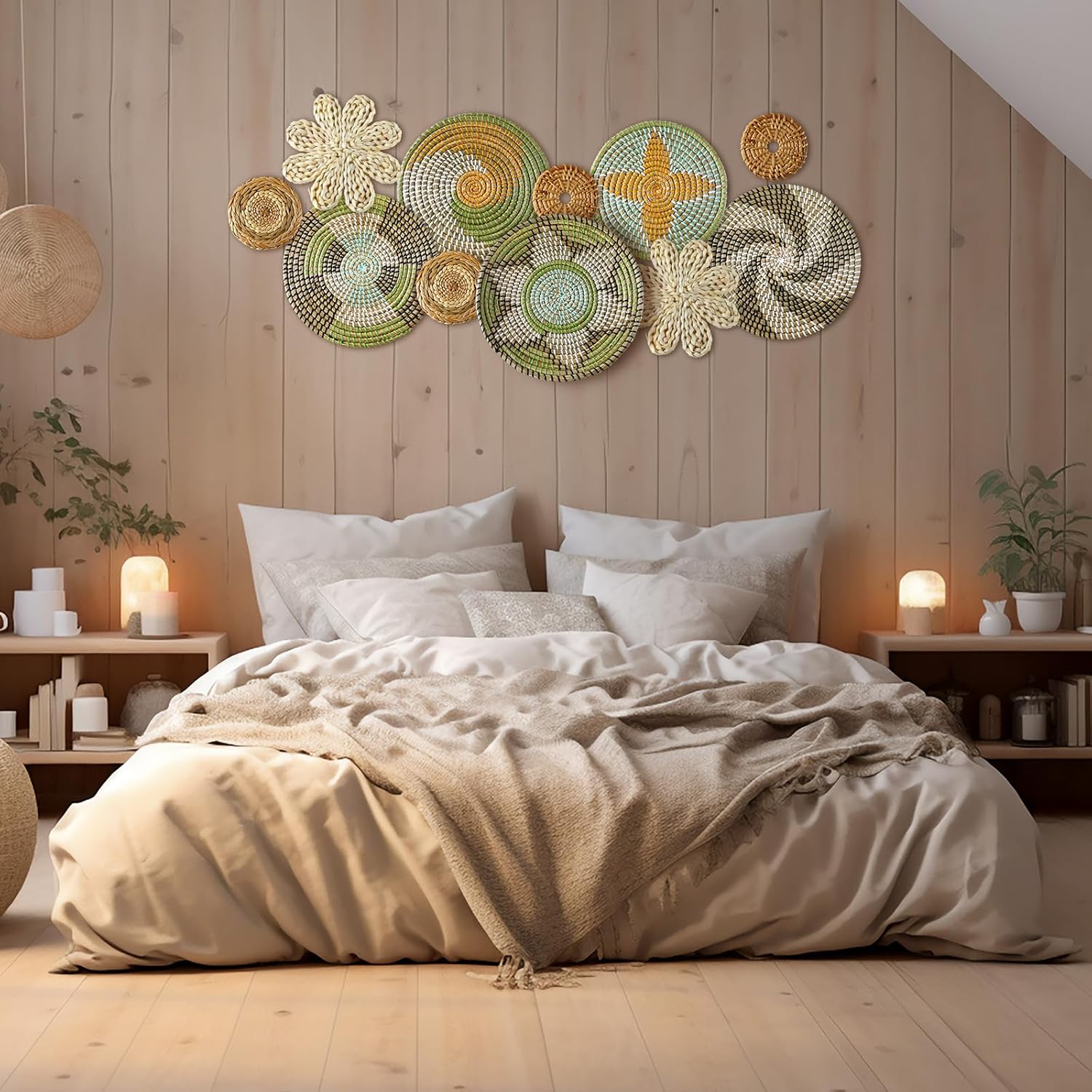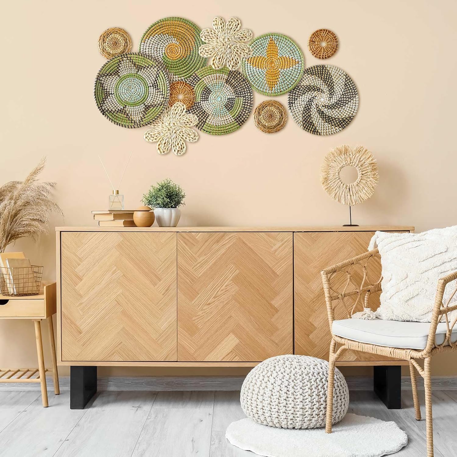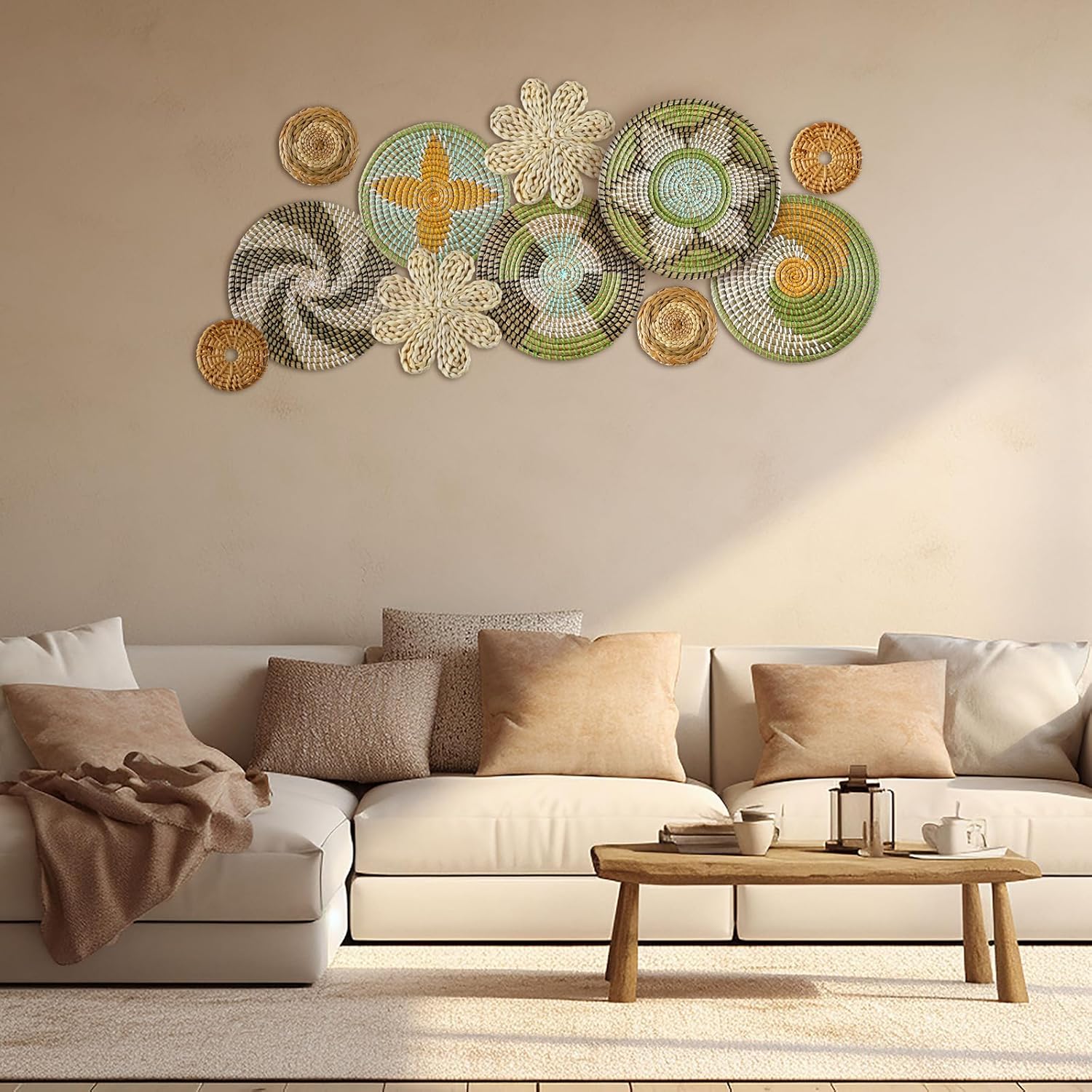 - Wide Range of Applications: boho basket wall decor set as placemats, or as decorative baskets to store toys and accessories, the rustic basket wall art is suitable for many occasions, such as hotels, restaurants, living rooms, bedrooms, schools, stores, offices, dorms, shops, Christmas and more, bringing you an elegant and classic feeling