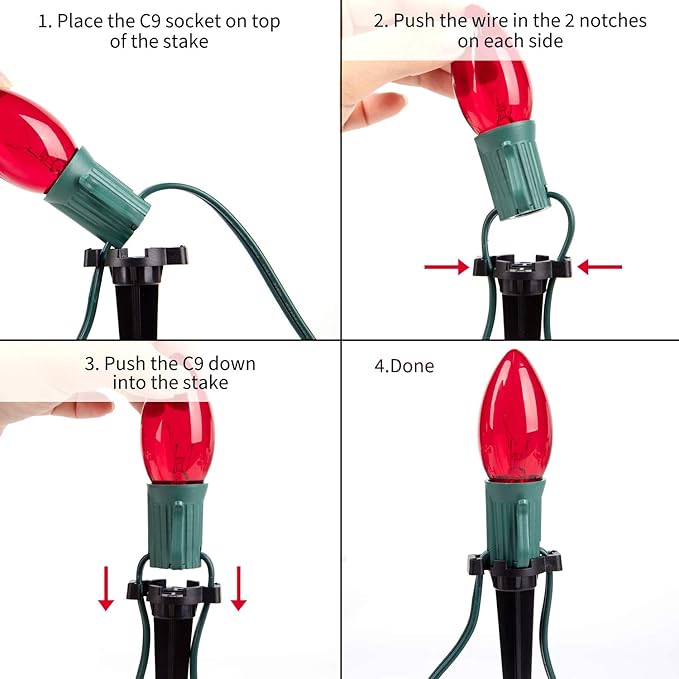 - Wateroroof Christmas Yard Lights: These Christmas light stakes for the yard comply with the rain test of UL certification. These holiday decoration lights are wonderful decorations for home, patio, lawn, garden, bistro, pub, cafe, restaurant, shopping center, supermarket, New Year, birthday, gathering, disco ball party, dinner party, evening party, the AC plug is not waterproof, it should be protected from the rainy day