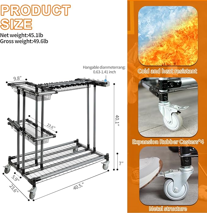 • 【Durable and Robust】With a metal structure, this rack won't collapse even when fully loaded, supporting up to 400 lbs, and withstands high garage temperatures in summer.