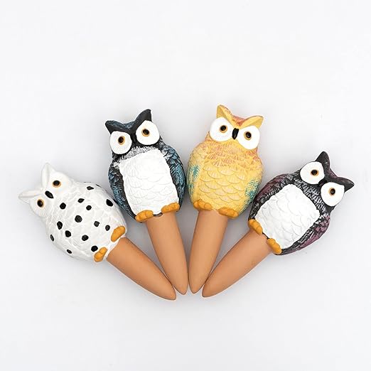 - 🦉Easy to Use: Simply soak the terracotta in water, insert self-watering spikes into the soil, and fill it up. The wide opening makes refilling easy, and the automatic plant waterer gradually releases water into the soil, keeping your plants perfectly moist without overwatering.