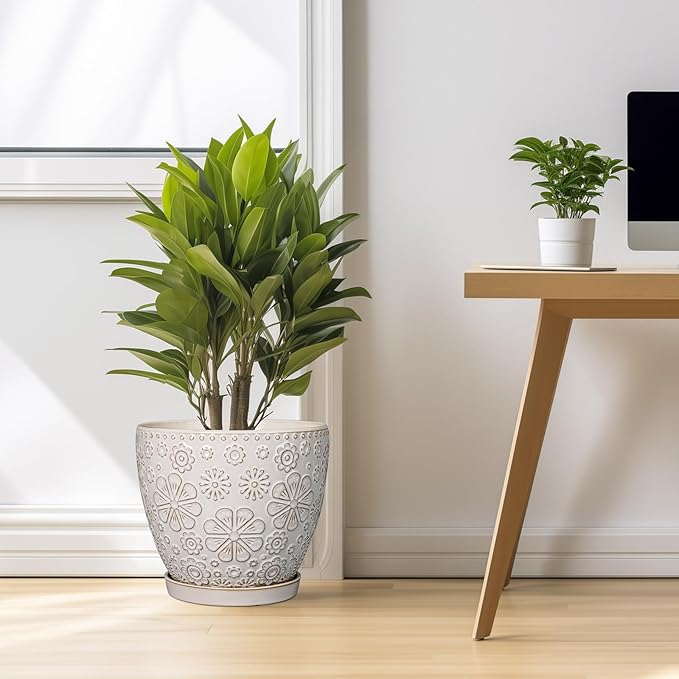 - Stylish Appearance: Our ceramic planter has a white main colour and a beautiful embossed petal pattern on the surface, elegant appearance making it ideal for home decor, garden decor and office decor