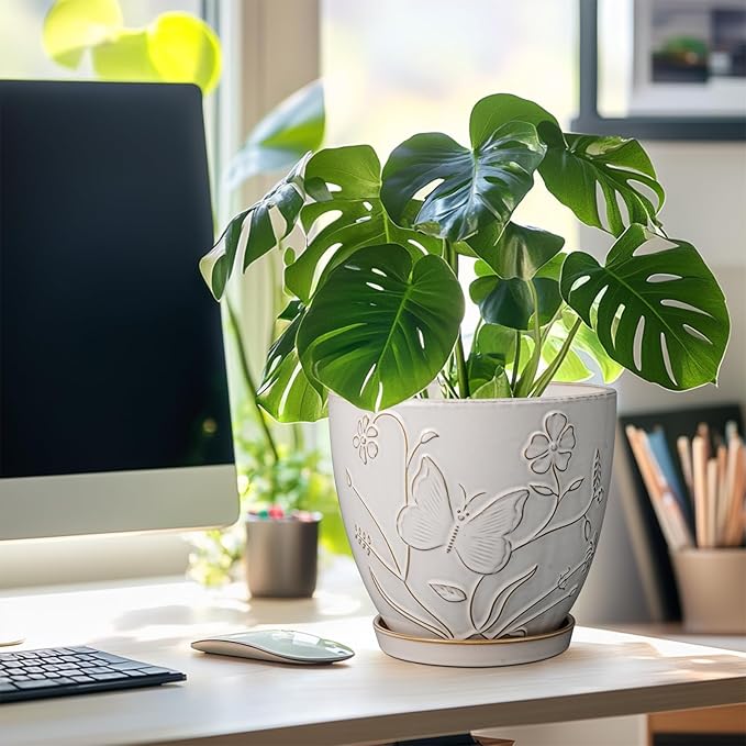 - Stylish Appearance: Our ceramic planter has a white main colour, a beautiful embossed petal and leaf pattern on the surface, elegant appearance making it ideal for home decor, garden decor and office decor