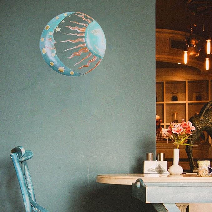 - PERFECT SIZE: With dimensions of approximately 28x28cm/11.02x11.02inch,our outdoor sun metal decor offers the perfect size for both indoor and outdoor use.Its light blue color creates a rustic and retro ambiance,enhancing any environment it is placed in.Experience the charm and elegance of this art piece.