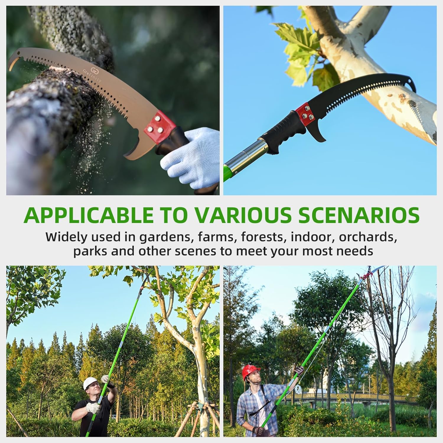 - Versatile Pruning Tool: With an adjustable length from 7.8 to 27 feet, this detachable pole saw easily adapts to any task. It can be used for trimming tall trees or as a handheld saw for cutting low branches, shrubs, and logs. Perfect for forestry, gardening, and landscaping, it’s suitable for a variety of pruning jobs.