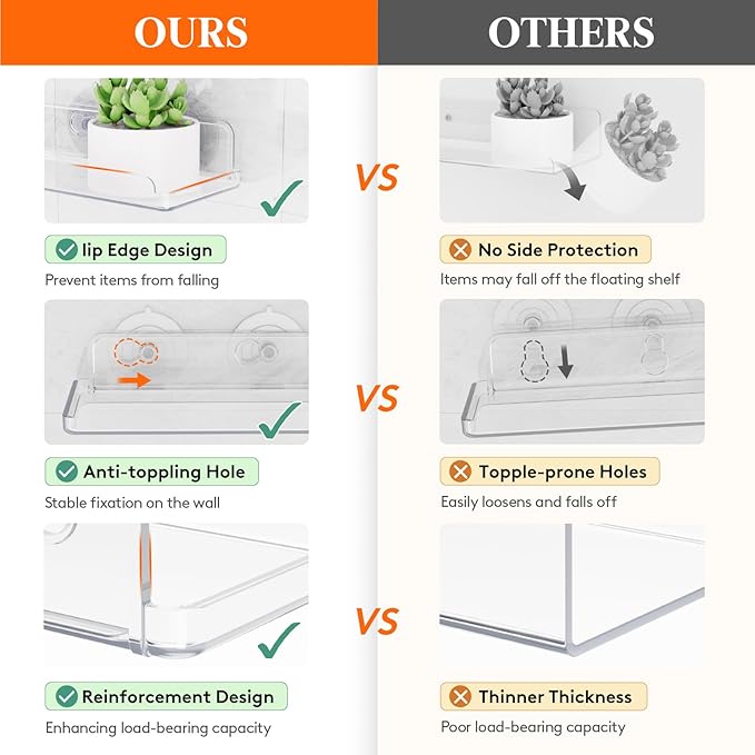 - Easy Installation: Installation is hassle-free with no drilling required. Simply clean the surface with a wet wipe or alcohol pad, then firmly press the suction cups onto the window. This quick and easy setup allows you to enjoy your new shelf in no time