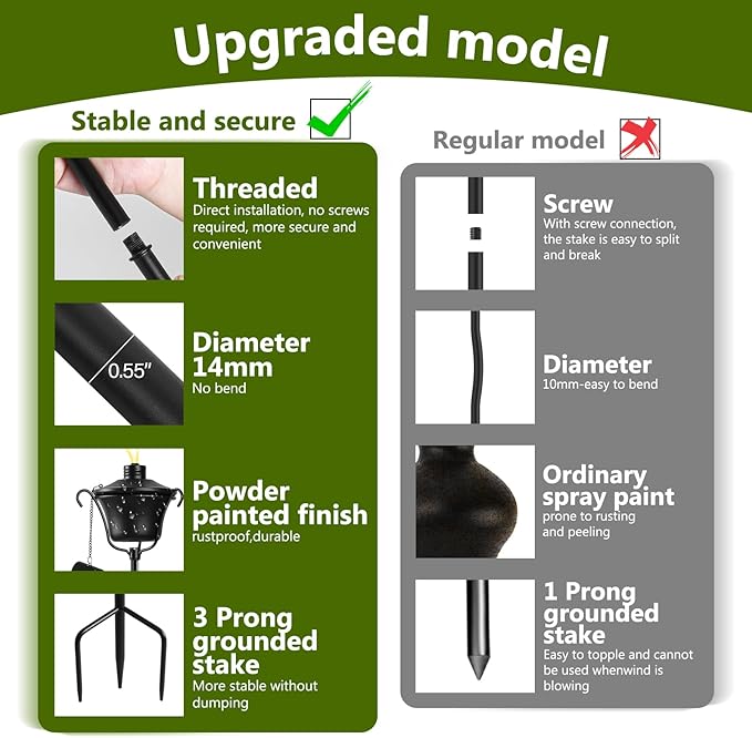 • 【3-Prong Stake】Improved the grounded stakes to 3-prong stake, which is more stable. No bends and breaks.