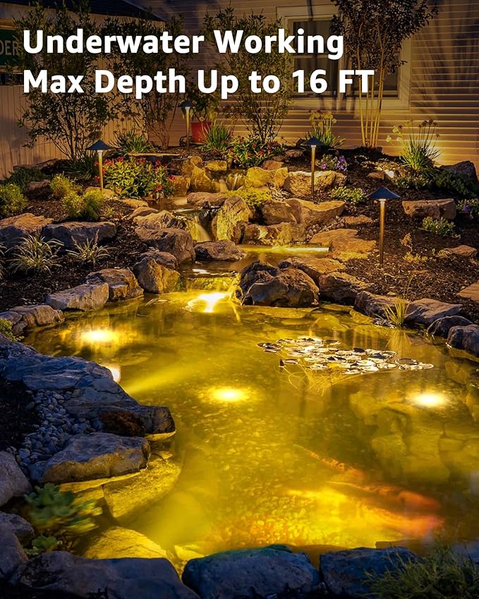 - WIDE APPLICATION - The fountain lights submersible outdoor led are powered by 12-24V AC/DC power supply, compatible with almost all low voltage lighting system. The underwater lights are widely used in your pool waterfall, outdoor pond, fountain, stream, water statue, stream, pond rocks.(Note the transformer is not included in the package)