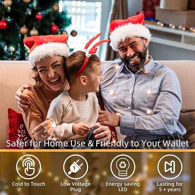 - Christmas Lights & Energy-efficient: Our LED Christmas lights offer a safe lighting solution for your holiday decor, especially when it comes to their soft and gentle glow. The decorative lights are designed with energy-efficient LED bulbs, consuming less electricity and lasting longer than traditional lighting options. They're an eco-friendly choice for your Christmas decorations.