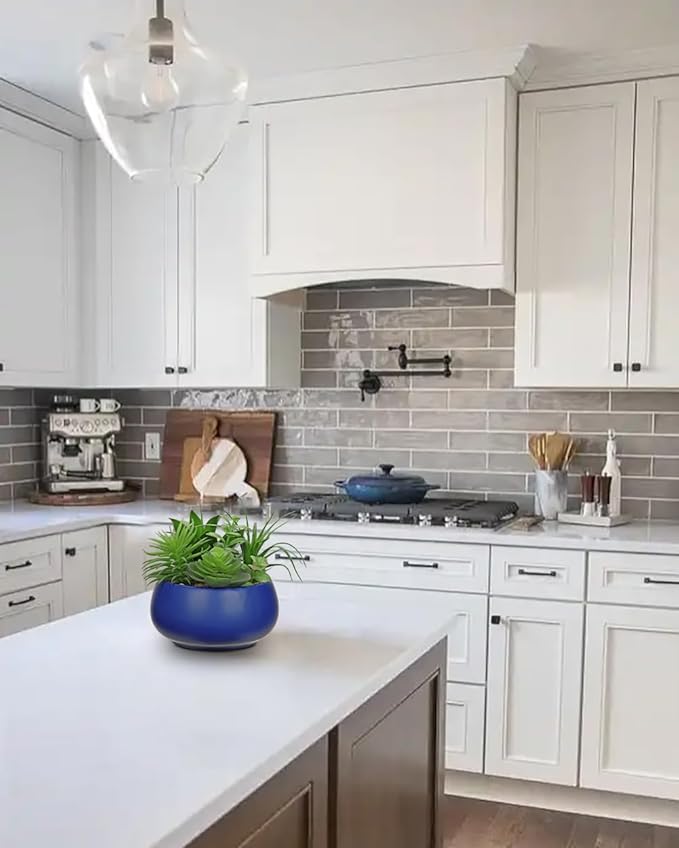 Fake Plants Artificial Succulents in Pots Faux Succulent Arrangement Potted Plant in Blue Ceramic Planter Bowl for Home Decor Office Desk Bathroom Shelf Living Room Indoor Decorations