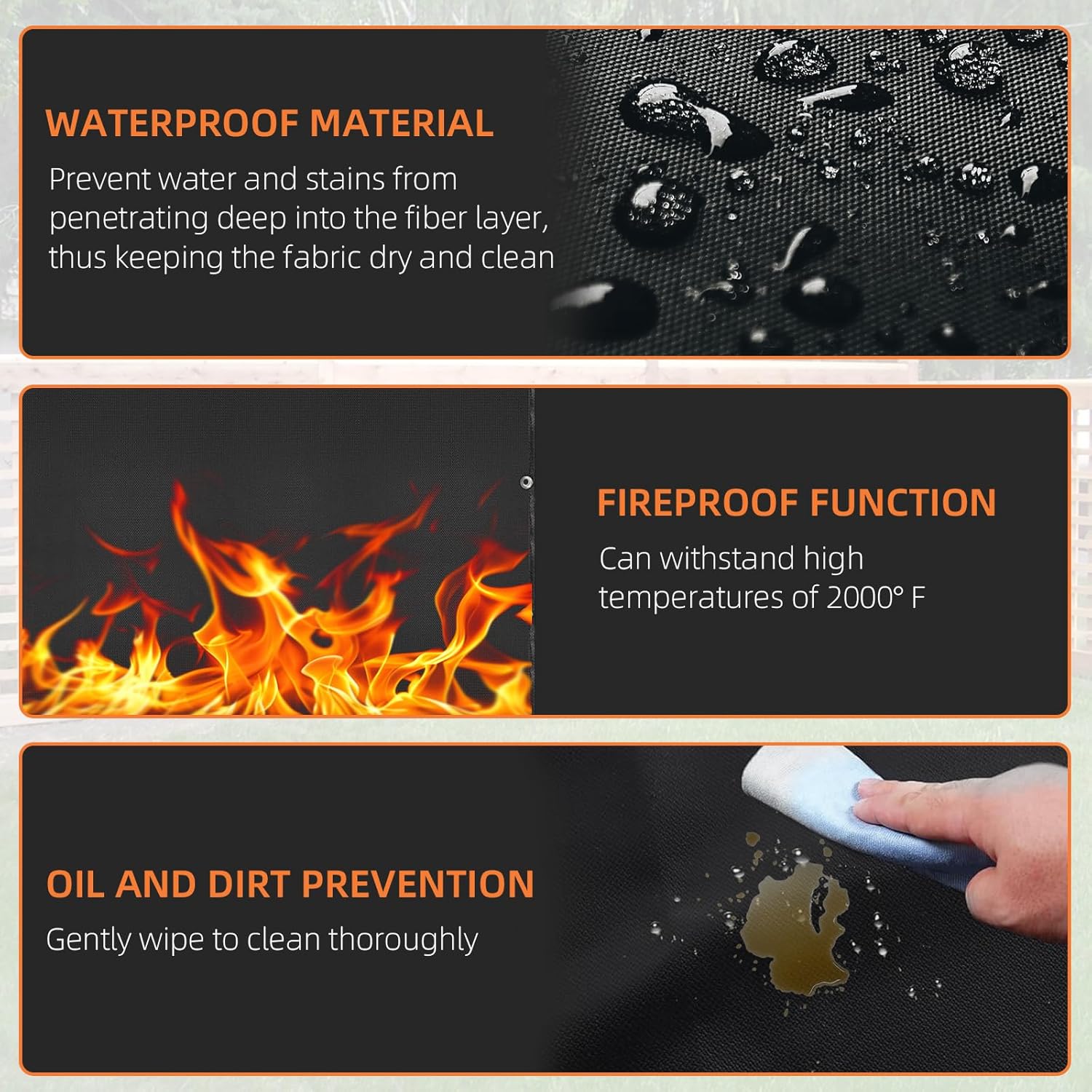 • HEAT RESISTANT: made of fiberglass with silicone coating Features heat-resistant silicone coating on both sides for maximum durability this grill shield withstands temperatures up to 2000°F protecting decks and fences from hot embers and oil
