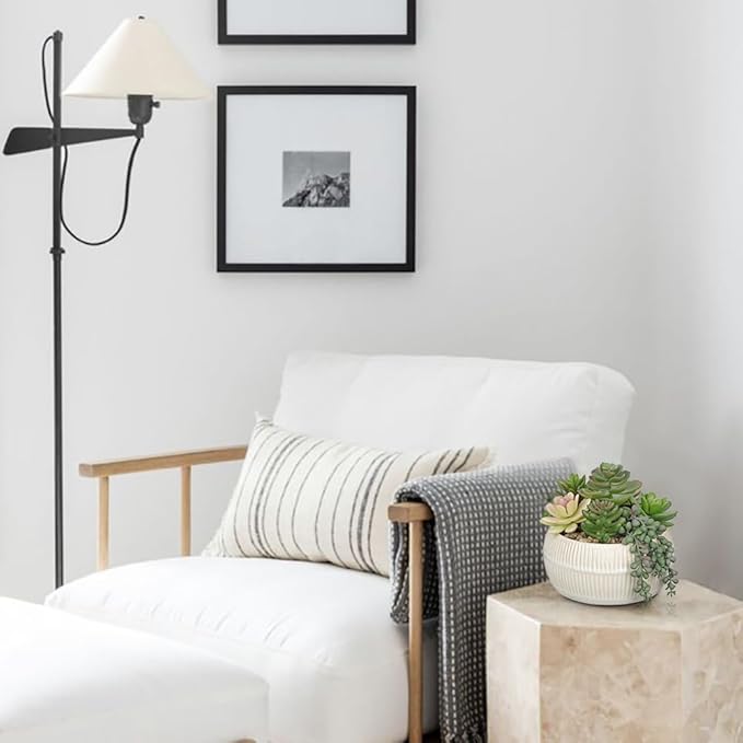 - Premium Material Design: Features high-quality polyethylene artificial succulents rooted in a sturdy ceramic pot, topped with decorative pebbles for an authentic touch. The ceramic base ensures durability while the pebbles add natural texture