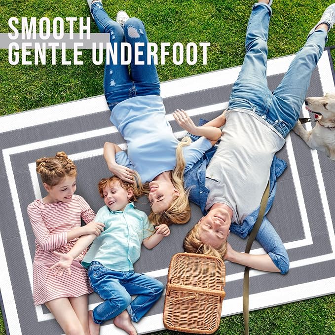 - Reversible & Versatile: This patio rug is designed to instantly transform your space with a simple flip, making it perfect for balconies, patios, picnics, or even kids' play areas. Its dual-sided design functions perfectly as an indoor outdoor rug, while its portability makes it an excellent choice for a camping rug or outdoor activities.