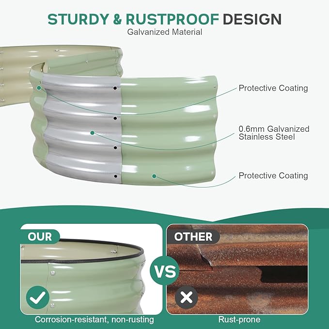 - 【 Durable and Long-lasting 】 BIRDSINYARD outdoor raised garden bed is made from 0.7mm thick galvanized steel,featuring a rust-resistant and corrosion-resistant coating.Garden planter effectively withstands humid weather and harsh conditions, ensuring it won't easily warp or rust with long-term use.