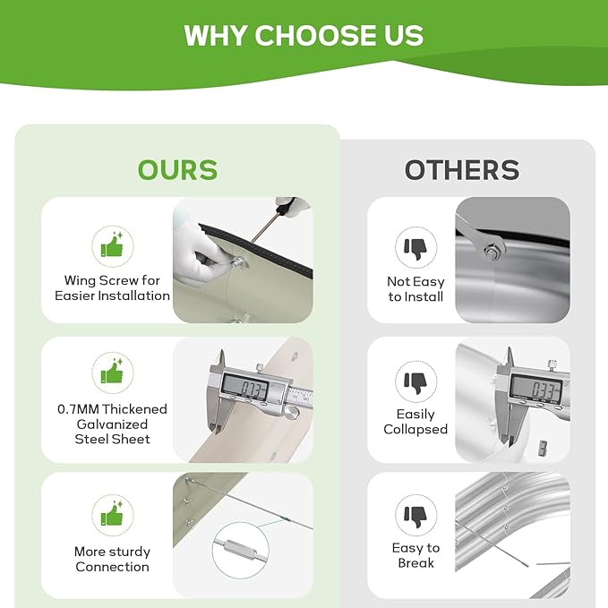 - 【 Durable and Long-lasting 】 BIRDSINYARD outdoor raised garden bed is made from 0.7mm thick galvanized steel,featuring a rust-resistant and corrosion-resistant coating.Garden planter effectively withstands humid weather and harsh conditions, ensuring it won't easily warp or rust with long-term use.
