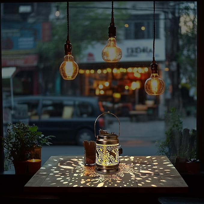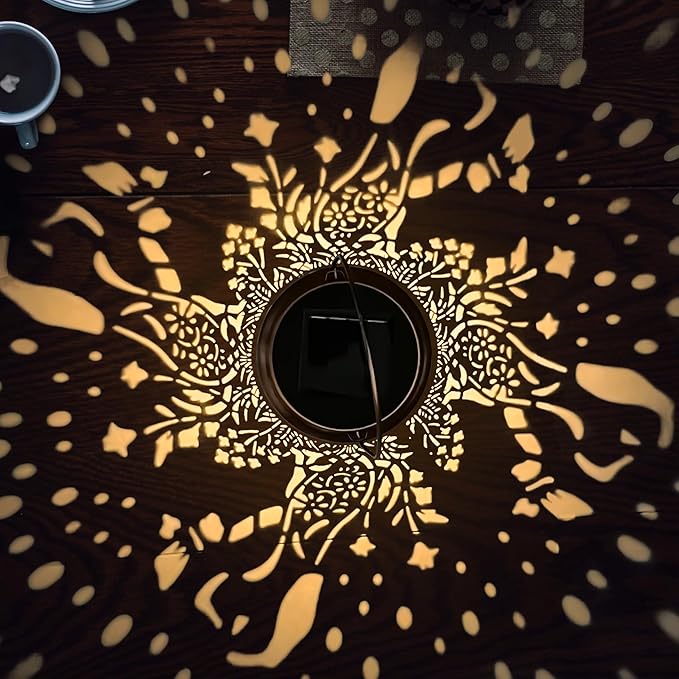 - Perfect Decorative Unique Design:This solar-powered outdoor lantern features an intricate dog and floral cutout pattern that casts a warm, enchanting glow ,The vintage garden decor Solar Lantern pet dog outdoor camping waterproof lights retro appearance, with gold copper color and hollow out metal veneer, the solar outdoor lanterns casts bright and warm light in darkness, accompanied by gorgeous and graceful dog patterns, adding a beautiful atmosphere to the surrounding environment.