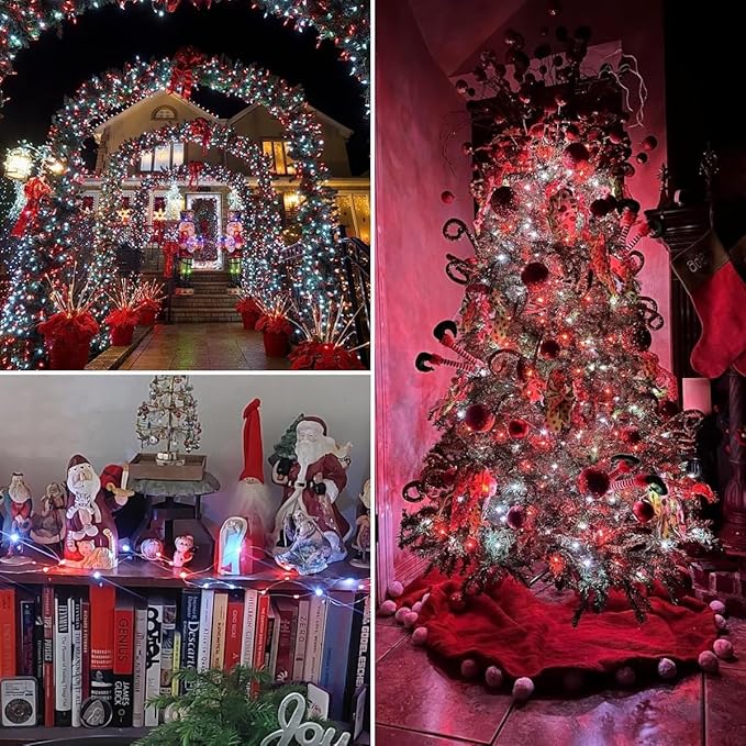 - Great for Christmas Decor:100 LED starry-style fairy lights with Red and White light accent your space with a unique, inviting glow. 33ft length is perfect to put around a garden or porch railing.The silver line design can be integrated with all kinds of scenes, more hidden, better reflect the beauty of the light.Hang these Red & White fairy lights on the Christmas tree or stick them on the wall to bring a festive atmosphere to your home. Have a warm and unforgettable Christmas with your family!
