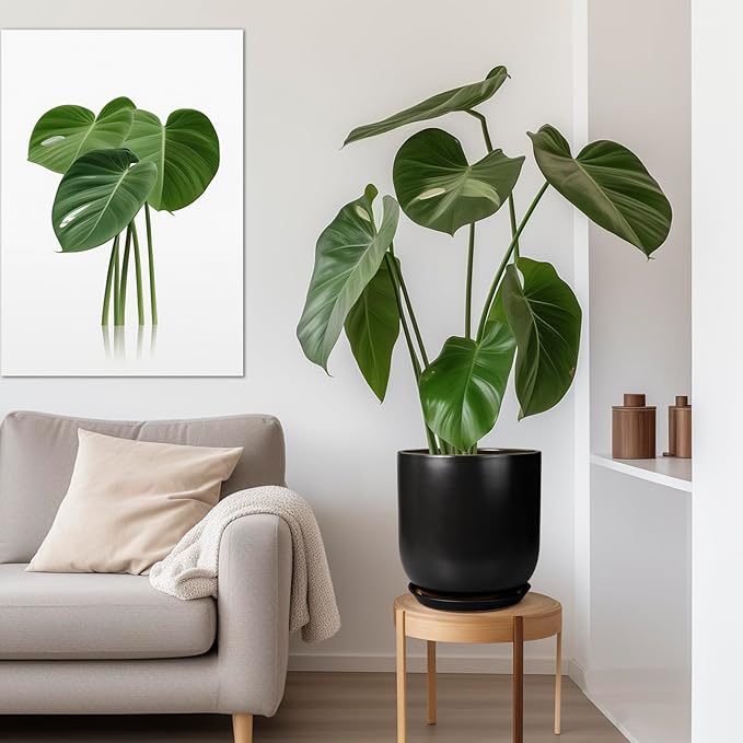 - Size of Black Planter: Each ceramic planter is 11.6” in outer diameter and 12” in height. The optimal size makes this ceramic plant pot an ideal home for planting monstera, money tree, ficus lyrata, olive tree, bonsai