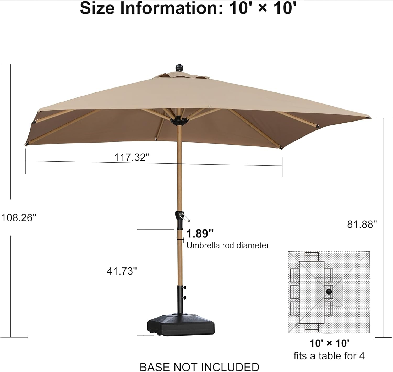 - Important Notes: Package Includes one 10 x 10 ft deck umbrella, umbrella base and furniture are NOT included. Please search PL245ML for umbrella base