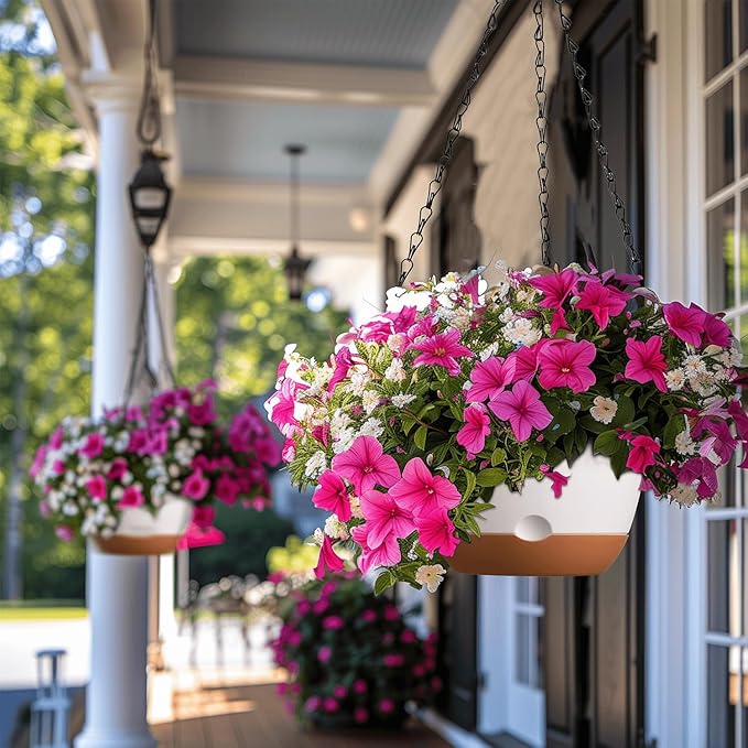 - 【2 Set 8-Inch Hanging Flower Basket】Transform your plant displays with our 8-inch self-watering large hanging planter. Ideal for a diverse range of plants, from bright flowers to thriving ferns and succulents, these 8" hanging pots offer generous space for your greenery. Good for creating eye-catching botanical arrangements, our hanging plant holder is suitable for both indoor and outdoor settings.