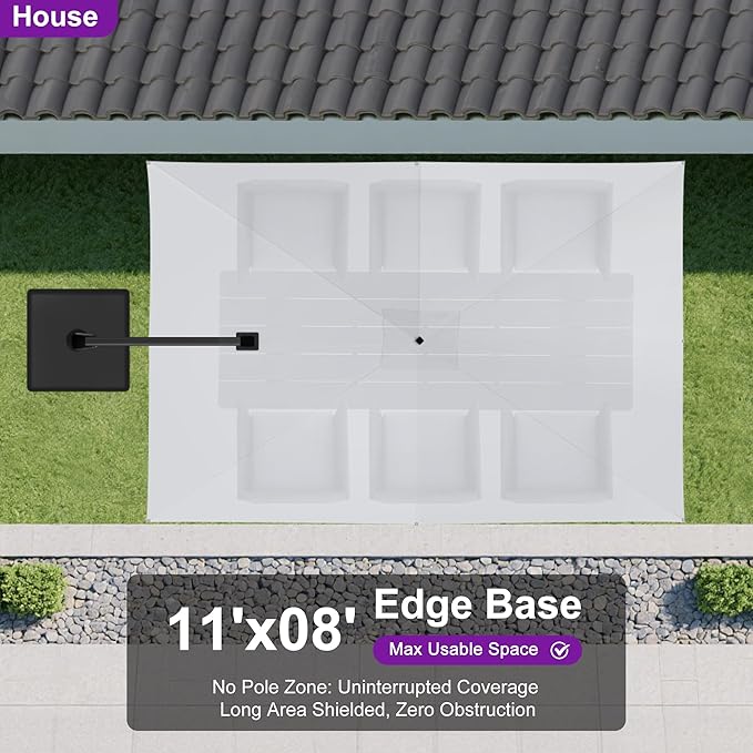 - Upgraded Swivel Function: The umbrella rotates 360°, the canopy tilts left and right, and has 8 adjustable positions to provide optimal shade from all angles, allowing you to enjoy a comfortable outdoor experience all day long.