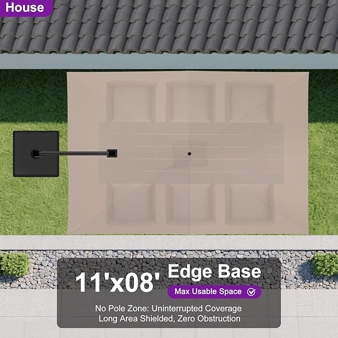 PURPLE LEAF 11.5' X 8' Left-right Tilting Outdoor Patio Umbrella Swivel Offset Cantilever Heavy Duty Rectangle Aluminum Umbrella with UV Resistant for Deck Pool Patio Backyard, Sand Dune
