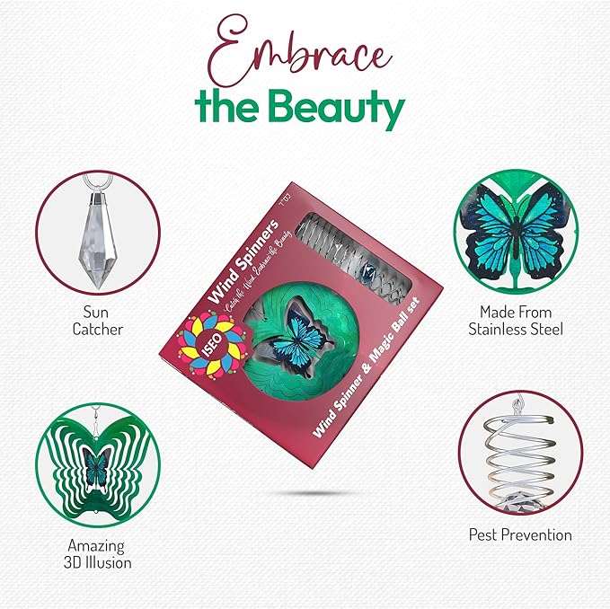 - Charming Butterfly Design – Add a whimsical touch to your garden with our 6.5-inch butterfly wind spinner and gazing ball set. The intricate butterfly design creates a stunning visual effect, making it a delightful focal point in any outdoor space.