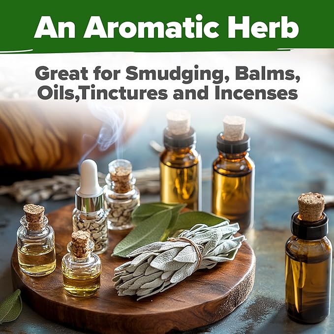 - DISTINCTIVE RESINOUS AROMA AND ESSENTIAL OILS β The plantβs sap produces an intense, pungent, resin-like scent. Crushing the leaves releases powerful essential oils and resins. Valued for its rich fragrance and symbolic role in traditional ceremonies, white sage is commonly used in smudging, incense rituals, and cultural practices to enhance focus and create a peaceful atmosphere.