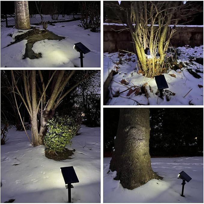 - 3-Level Adjustable Solar Spot Lights Outdoor: GKGG solar landscape lights outdoor combines intelligence and efficiency in one, allowing you to easily switch between three lights modes with just one button - Low lights mode(20 hrs)/Medium lights mode(10 hrs)/High lights mode(6 hrs). The solar panel can automatically determine whether it is day or night. Automatic switching of charging and lighting modes.