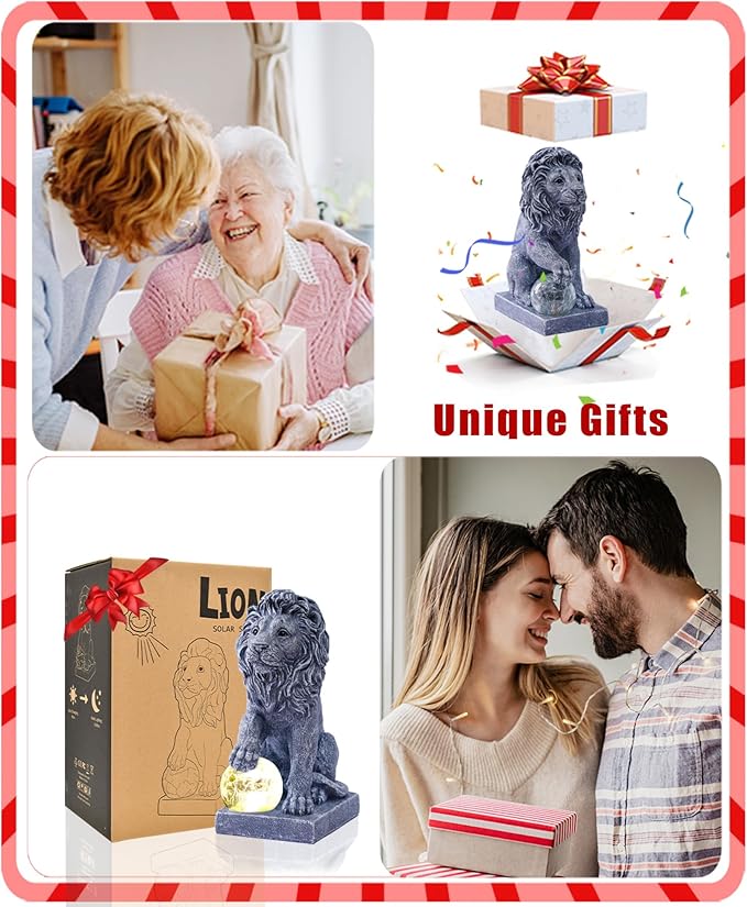 Nacome Solar Guardian Lion Garden Statue: Outdoor Decor Sculpture with Ball Lights for Yard Art Porch Patio - Unique Birthday Gifts for Women Mom