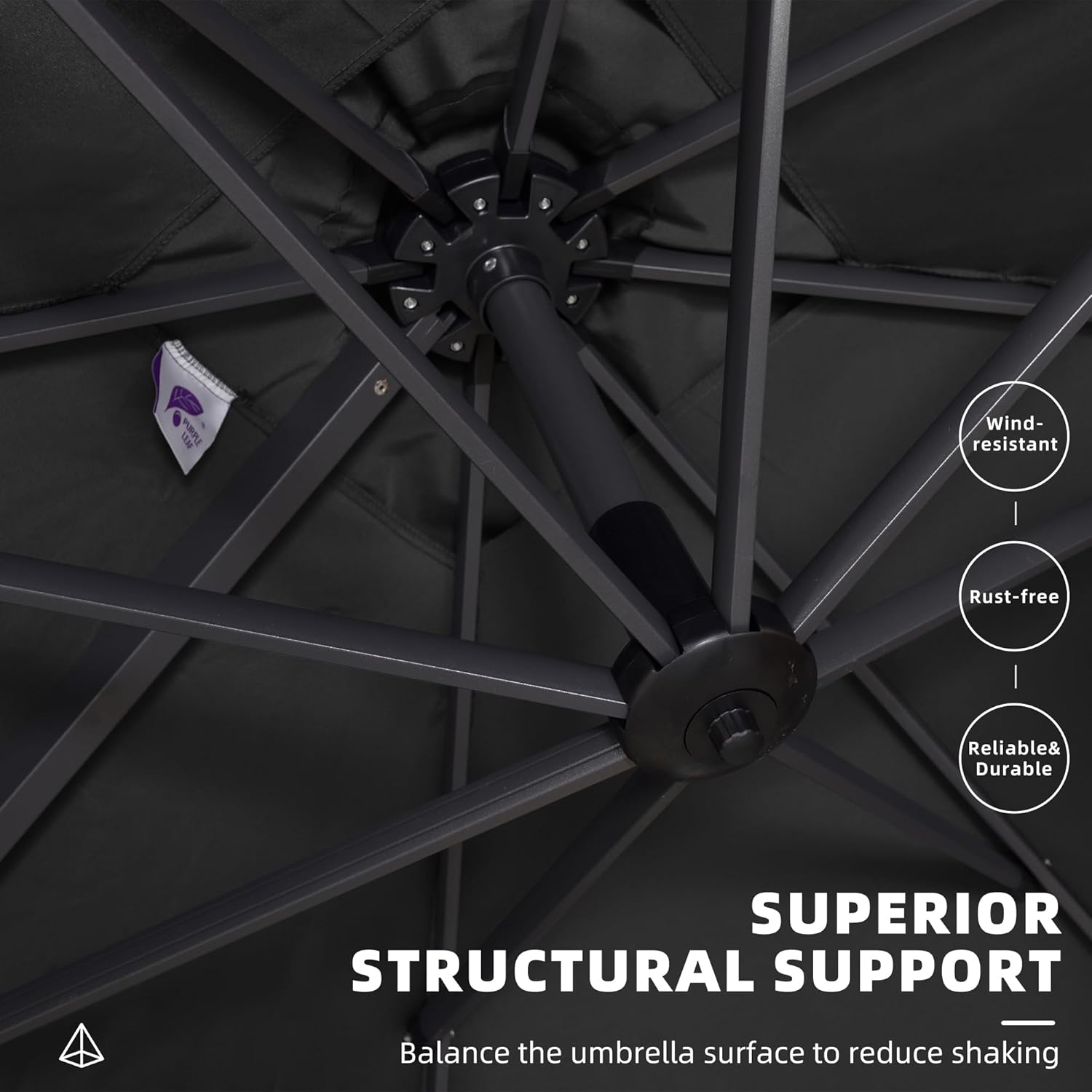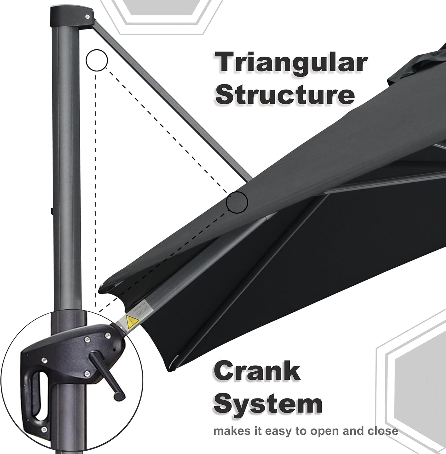 PURPLE LEAF 10 Feet Patio Umbrella Outdoor Cantilever Square Umbrella Aluminum Offset Umbrella with 360-degree Rotation for Garden Deck Pool Patio Black