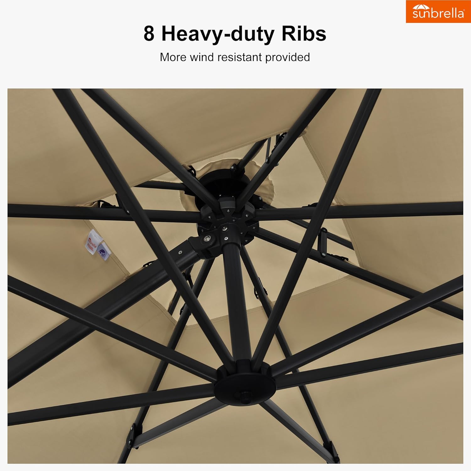 - Superior UV Protection: Featuring industry-leading fabric, this cantilever umbrella blocks over 98% of UV rays to effectively reduce skin cancer risks. 5 years of fade resistance, water and stain resistance.