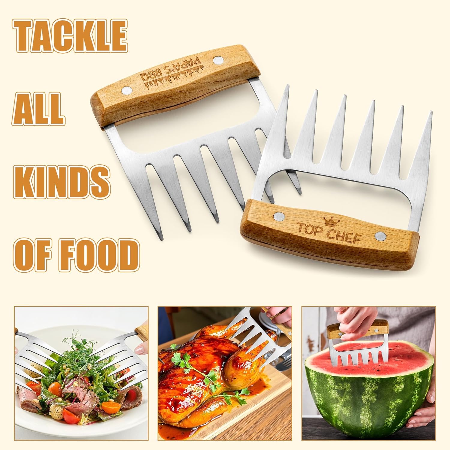 - Perfect for Holiday Gatherings:Our set includes 2 meat shredder claws, perfect for Father's Day, BBQ gatherings, and other festive occasions. With 'Best Papa Ever' and 'Top Chef' designs, they come with a festive drawstring bag and a gift box, making them a thoughtful Father's Day gift and BBQ tools for any BBQ enthusiast. Show your love and appreciation for dad with these claws, ideal for family reunions and backyard BBQs, adding a personal touch to your celebrations.holiday gatherings