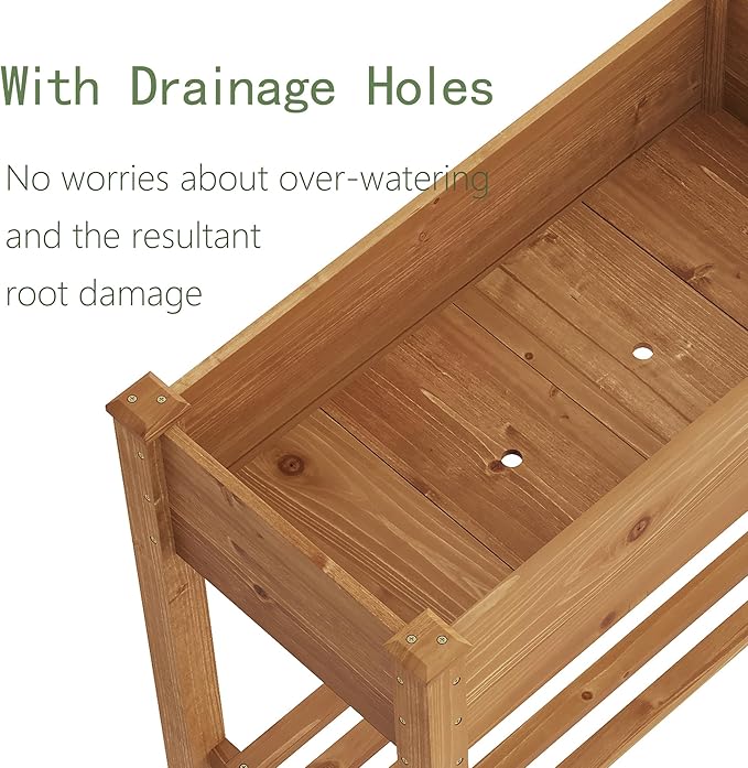 • Elevated Design: This raised garden bed features a sturdy wood planter box with legs, elevating it off the ground for convenient gardening.