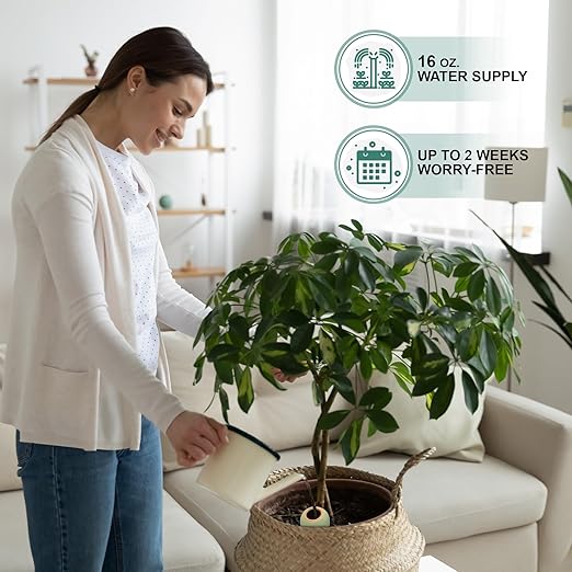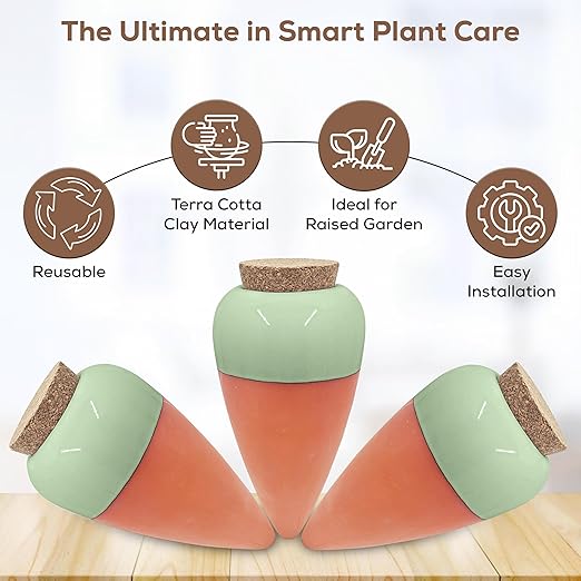 - SELF WATERING SYSTEM- Water Is Delivered Directly To The Root With Up To A 2 Week Supply Helping To Conserve Water. Vacation Without Worry With Terra Cotta Watering Spikes.