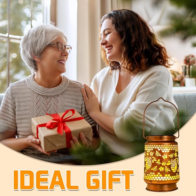 - 【Charming Vintage Style】The Bee lanterns with its elegant antique bronze finish and delicate cut-out patterns, this solar lantern casts a soft, inviting glow after sunset. Ideal for adding a touch of whimsy to your garden, it complements various outdoor settings while creating a warm and welcoming atmosphere.