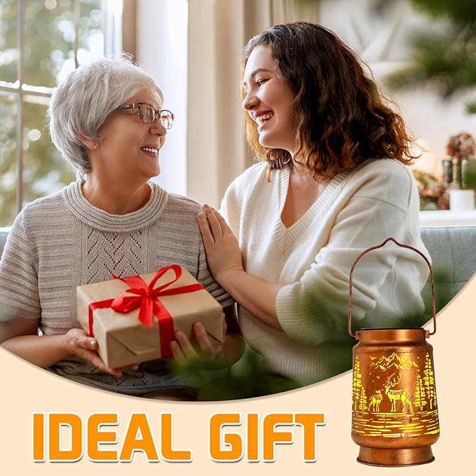 - 【Charming Vintage Style】The Deer lanterns with its elegant antique bronze finish and delicate cut-out patterns, this solar lantern casts a soft, inviting glow after sunset. Ideal for adding a touch of whimsy to your garden, it complements various outdoor settings while creating a warm and welcoming atmosphere.