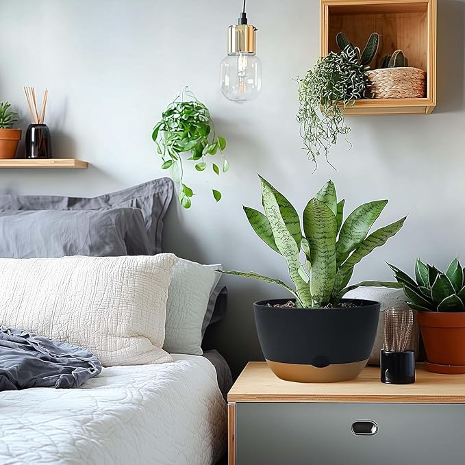 - 【2-in-1 Ventilation, Water Hole Design】There is a hole between the bottom of each flower pot and the tray, which is both a drainage hole and a ventilation hole. It not only controls root ventilation, ensures plant root breathing and promotes plant growth. Excess water beyond what is needed to meet plant growth needs can also be eliminated.