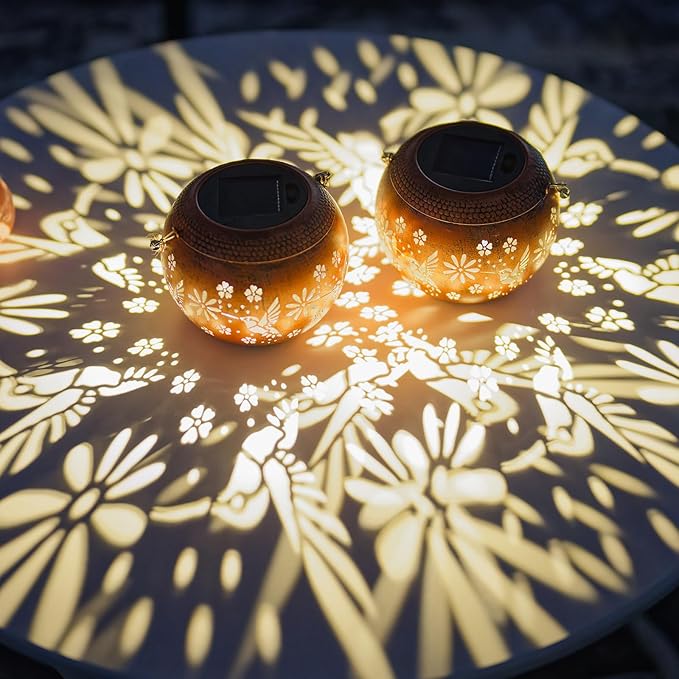 - 【Graceful Garden Decor】: The real charm of these solar lanterns is their capacity to project delicate hummingbirds and flowers onto the surrounding area. The outdoor solar lanterns emit a bright and warm light that enhances the beauty of your garden or patio, creating a magical atmosphere perfect for evening gatherings.