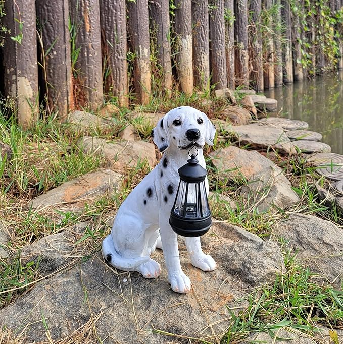 NASKY The Resin Handicraft Solar - Powered Hanging Lamp in The Shape of A Simulated Puppy of The Courtyard is Suitable for Places Such As Courtyards, Gardens and Balconies (Spotted Dog)