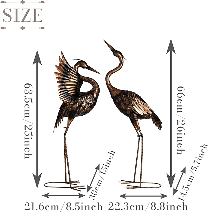 TERESA'S COLLECTIONS Yard Decorations Outdoor Garden Statues, Brass Metal Crane Yard Art, 25-26inch Lawn Ornaments for Backyard, Outside Porch, Patio, Wedding Decor,Set of 2,Spring Decor,Gifts for Mom