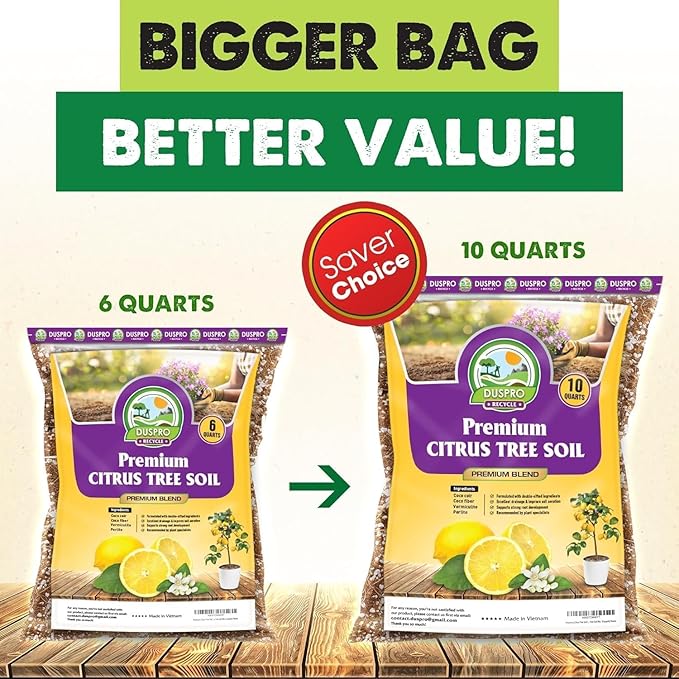 DUSPRO Recycle Citrus Tree Potting Soil Mix for Potted Lemon Tree, Specialized for Oranges, Fruit Tree Indoor Planting Pre-Mixed 4-in-1 Ready to Use (10 Quarts)